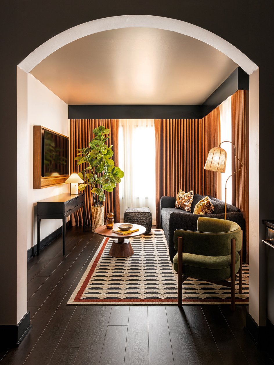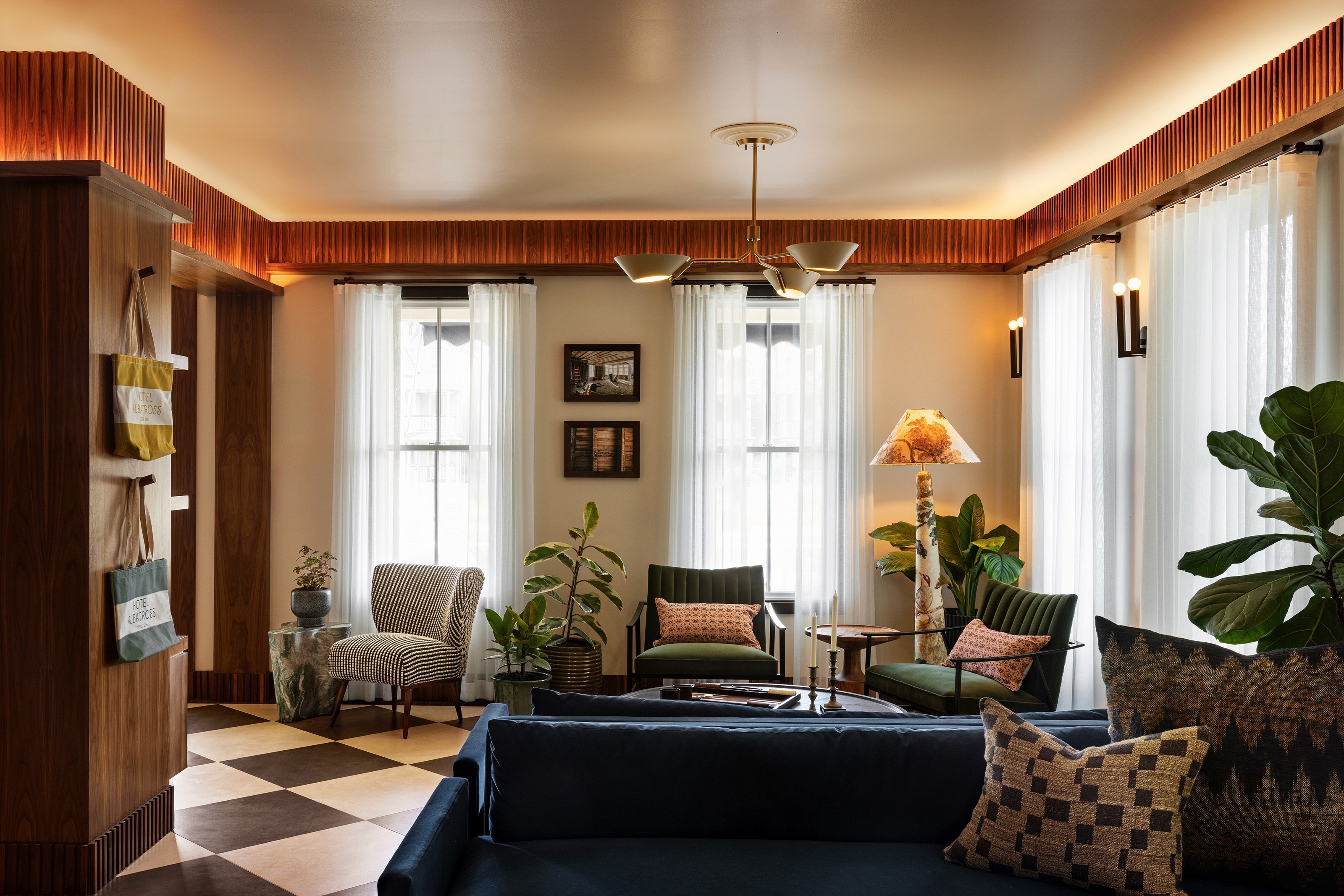 Across four floors of the mansion, sunlit rooms and suites with beach views invites all. Each room is thoughtfully curated rooms that blend historic character with contemporary comforts. Custom moody lighting, vintage nods, and pops of cheeky wallpaper. A few rooms take the nod to nostalgia further with built-in desks framed by original architecture.