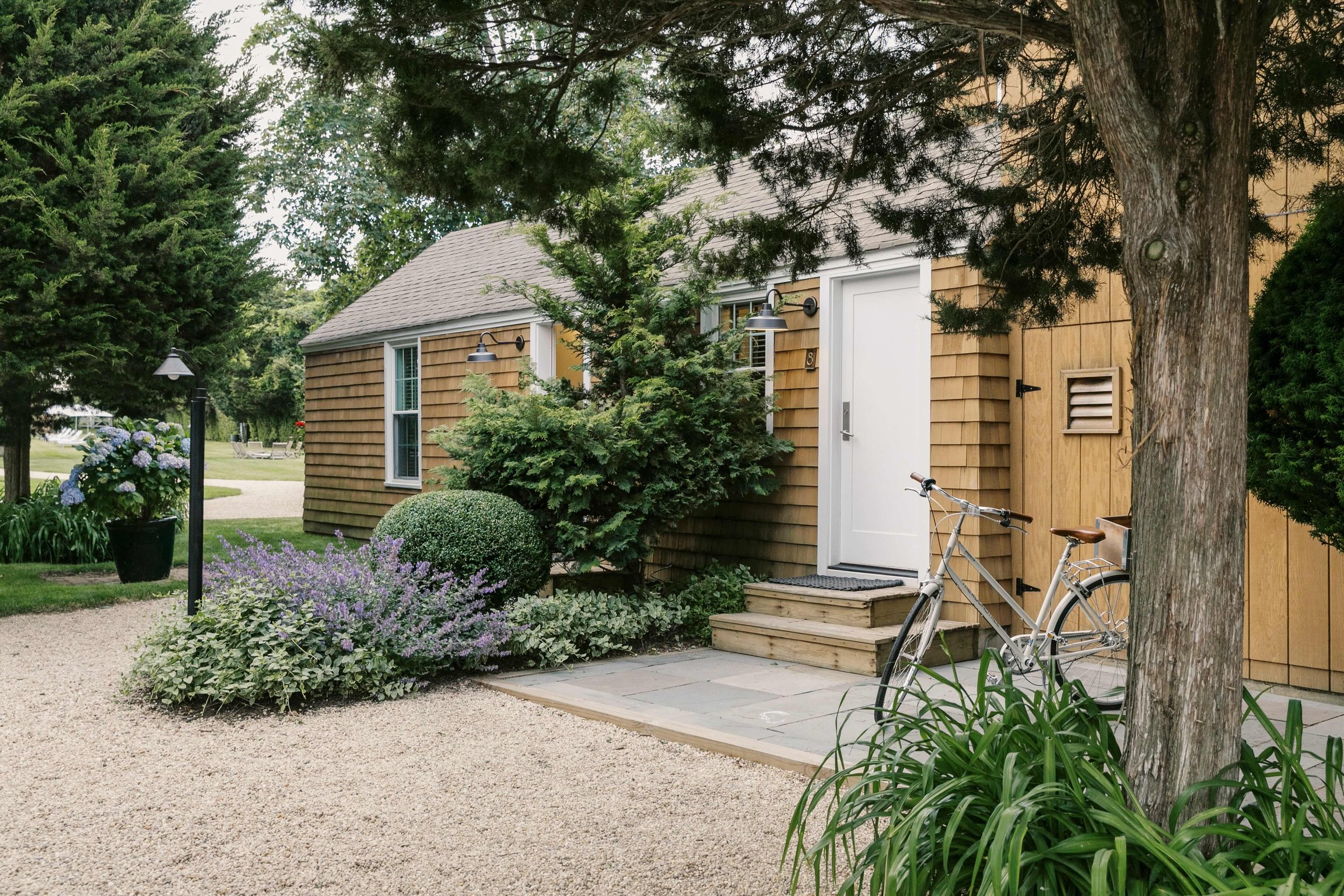 You might hop on one of the hotel’s beach cruisers, where they’ll pack you a tote, handle your chairs, and beach pass. Or instead, you can walk to lunch in town and do some shopping around at boutiques. Regardless of the choice, bicycles are lined up on the gravel for guests to take wherever their hearts desire.
